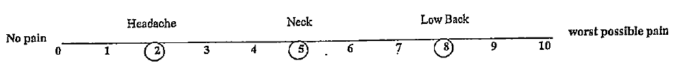 Note: If you have more than one complaint, please answer each question for each individual complaint and indicate the score for each complaint. Please indicate your pain level right now, average pain, and pain at its best and worst.